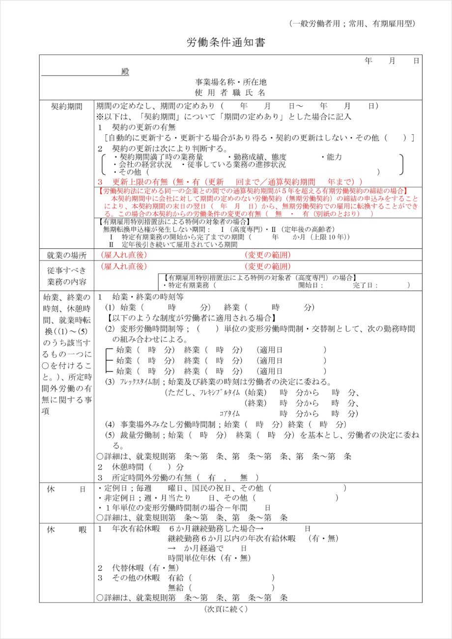 ここからは、一定期間ごとに契約の更新が必要となる「有期契約労働者」に対して労働条件の明示が必要になる内容です。